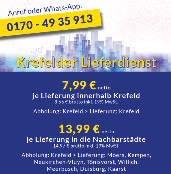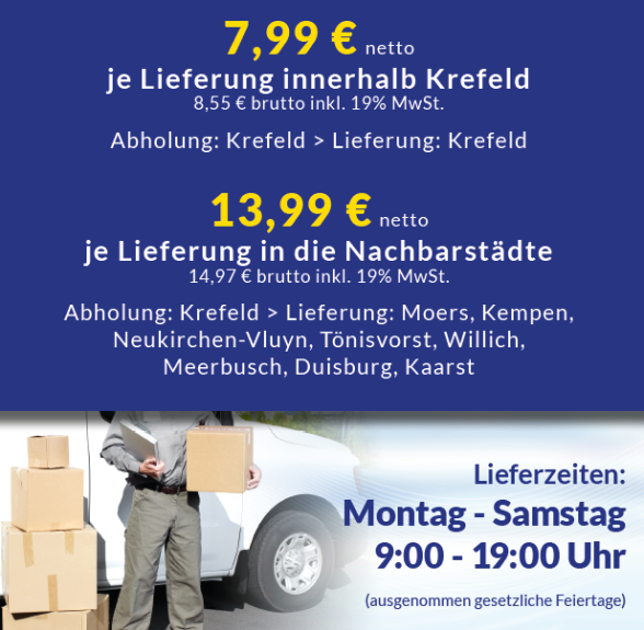 Gerne besprechen wir mit Ihnen auch individuell entwickelte Lösungen für Sonder- und Expressfahrten mit unserem Liefer-Taxi für Krefeld.
